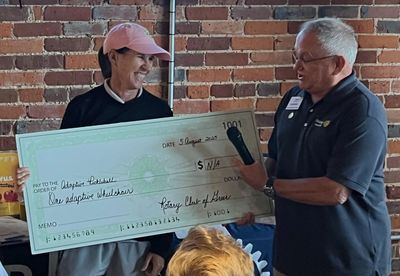 Last year during a visit and presentation from Adaptive Pickleball there was a lot of energy generated and we decided to pursue a district grant to help our this organization that promotes pickleball for all people. Fast forward to August and our club was honored to receive and present a Rotary District 7750 grant to purchase an adaptive wheelchair for Advanced Pickleball. This funding allows them to expand their reach and increase their service to those with diverse-abilities. Pickleball for All!